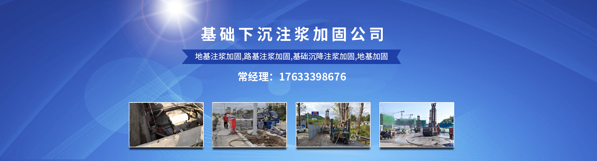 基础下沉注浆加固公司主营:地基注浆加固,路基基础沉降灌浆加固,回填土下沉注浆填充,地基基础加固施工,新建基础蓄水池回填土沉降,建筑房屋厂房设备基础注浆顶升纠偏,软地基处理等各类地基加固服务。我公司拥有一批技术力量雄厚、的工程技术人员、施工管理人员和经验丰富的施工队伍,并成功完成了近百项地基注浆施工项目,并与多家单位建立了良好的合作关系。多年来,我公司始终以客户需求为,想客户之所想,解客户之所急,以信誉求发展,以质量求生存,一切以客户满意为标准,质量上乘,服务,并做到同行业比质量!同质量比价格!! 同价格比服务!!! 欢迎新老客户来电咨询洽谈!